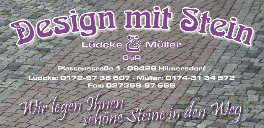Das Unternehmen Design mit Stein wurde 2010 von Robert Müller und Thomas Lüdcke gegründet und ist Mitglied in der HWK Chemnitz. Unsere Leidenschaft ist das Versetzen von Naturstein und das Gestalten von Grundstückszufahrten, Wegen und Terrassen.